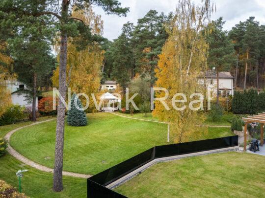 The landscaped 3690 m² plot offers a walking area, sunny terrace, barbecue zone, sports area and a tea pavilion. The territory features pine trees, deciduous trees and fruit trees.