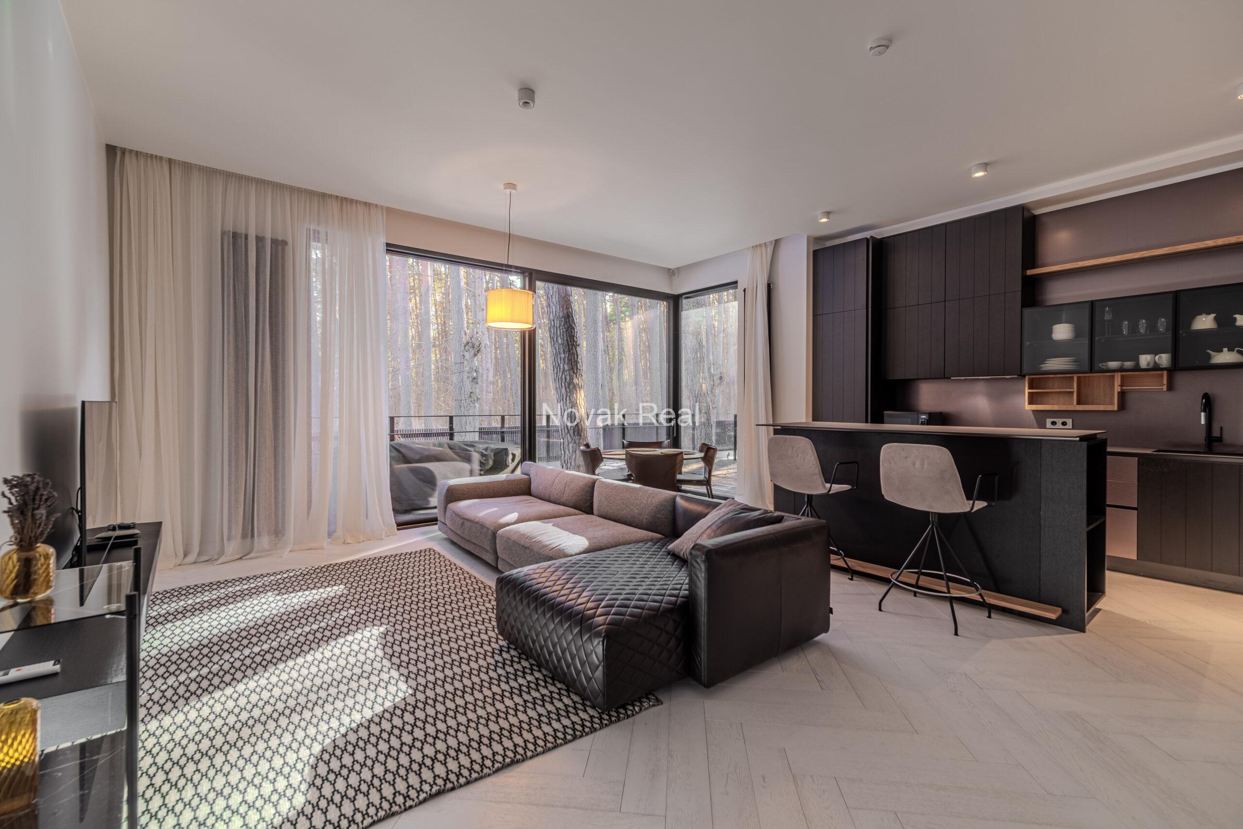 Tiek pārdots un izīrēts ekskluzīvs dzīvoklis jaunā, stilīgā kluba tipa mājā 200 metru attālumā no jūras.