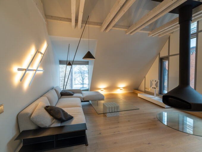Atrodas pilnībā saremontētā ēkā, 54 kv. m., sava gāzes apkure, žalūzijas. Pagraba dēļ ir iespējams palielināt platību – 90 m2.