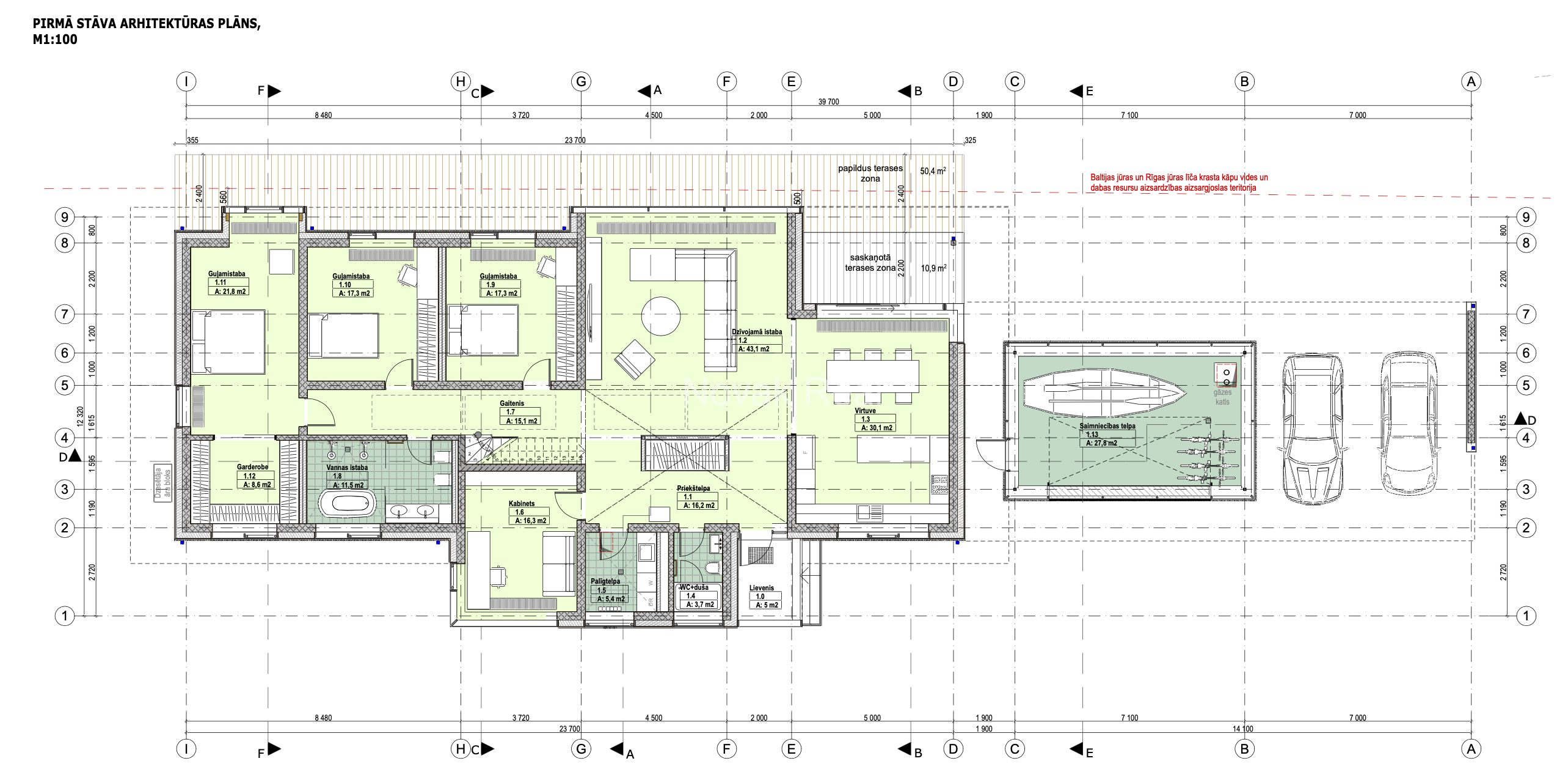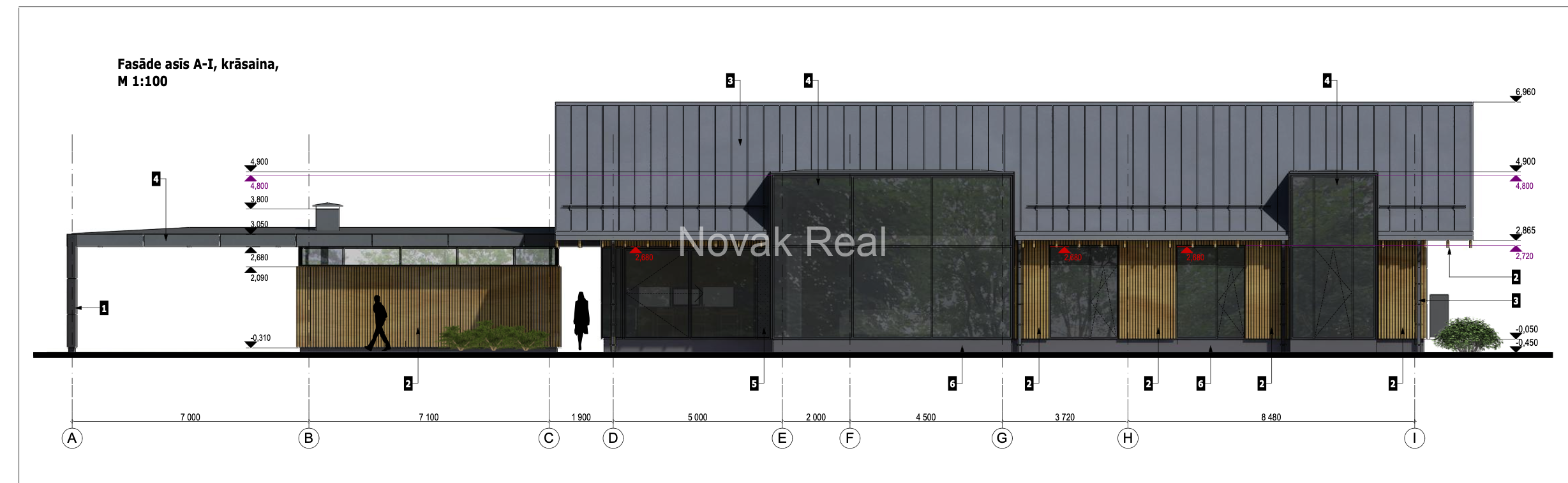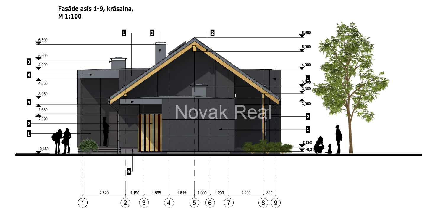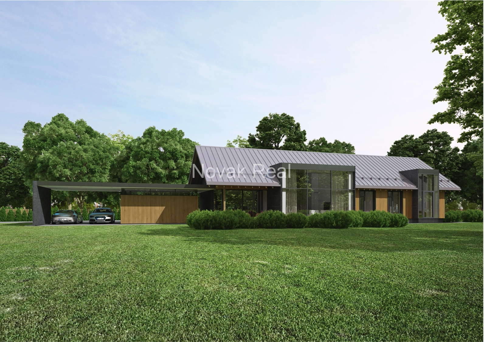 Cenā iekļauts gatavs mūsdienīgas mājas arhitektūras projekts ar būvatļauju (nepieciešams pagarināt). Projekts paredz izteiksmīgu arhitektūru ar panorāmas stiklojumu, otro gaismu viesistabā, pārdomātu privāto zonu un integrētu garāžu. Tīras līnijas, koka un tumšo fasādes apjomu kombinācija, lakoniska ģeometrija – māja organiski iekļaujas dabiskajā vidē.