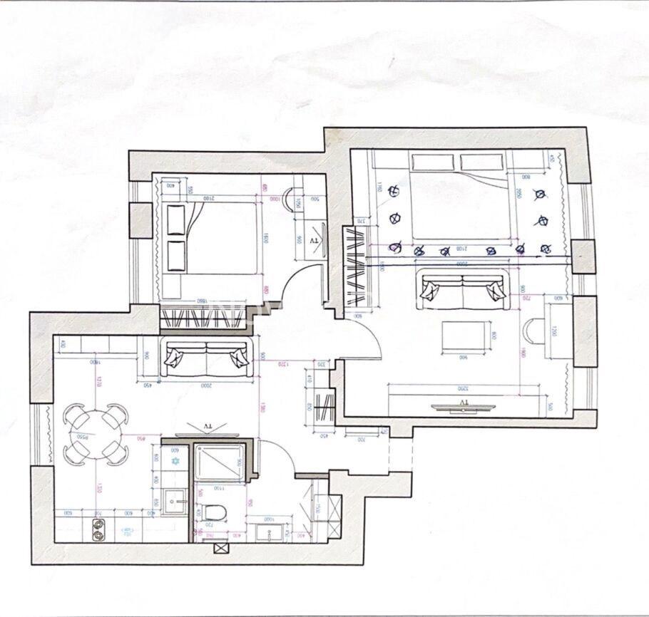 Квартира площадью 70 кв.м. расположена на 4 этаже, установлен лифт. Окна выходят как на улицу, так и на южную сторону во двор, создавая светлую и приятную атмосферу. Планировка включает гостиную, гармонично совмещенную с кухней, две спальни и ванную комнату.