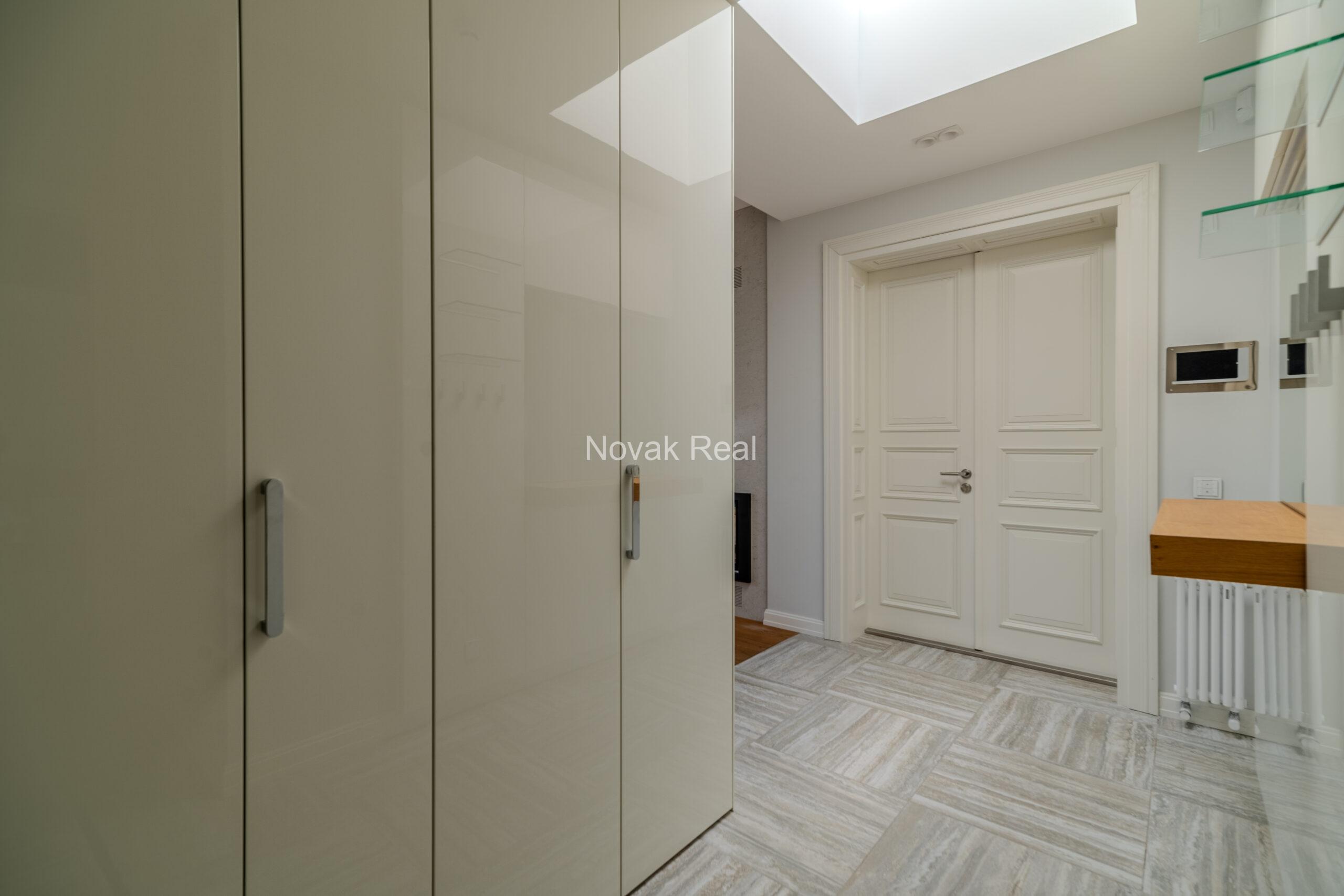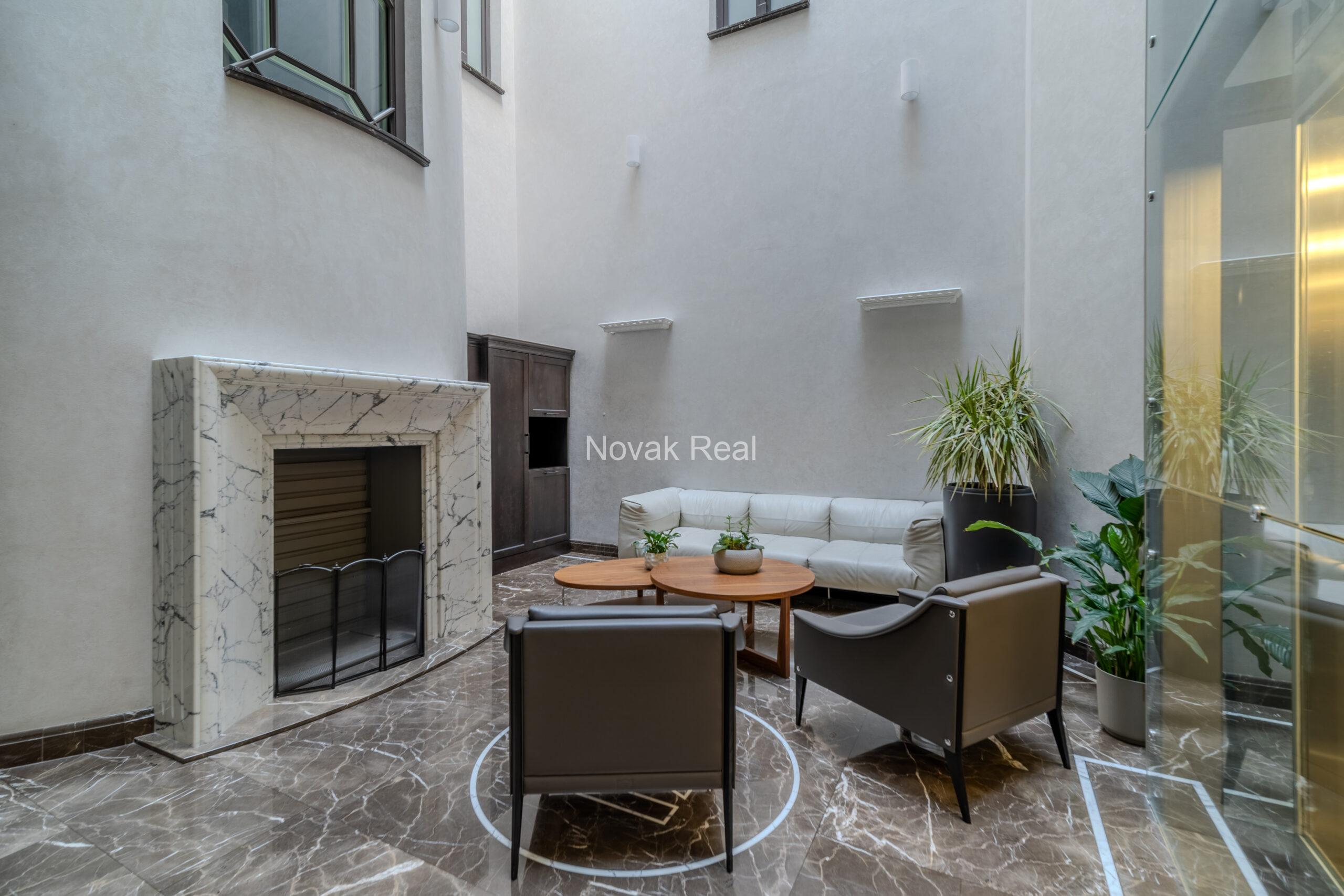 В отделке дома используются всемирно известные бренды: розетки и выключатели – немецкой марки Jung, керамическая сантехника Falper, Zucchetti, Teuco, Bisazza, радиаторы Tubes. Шкафы, мебель – Lema, Molteni&C, Moooi, Ligne Rosset и др. Кухонная техника – Arclinea. Все квартиры оборудованы охранной и пожарной сигнализацией, системой видеонаблюдения, телефонной связью и Wi-Fi. На кухне и в ванной теплые полы. В большинстве квартир есть камин.