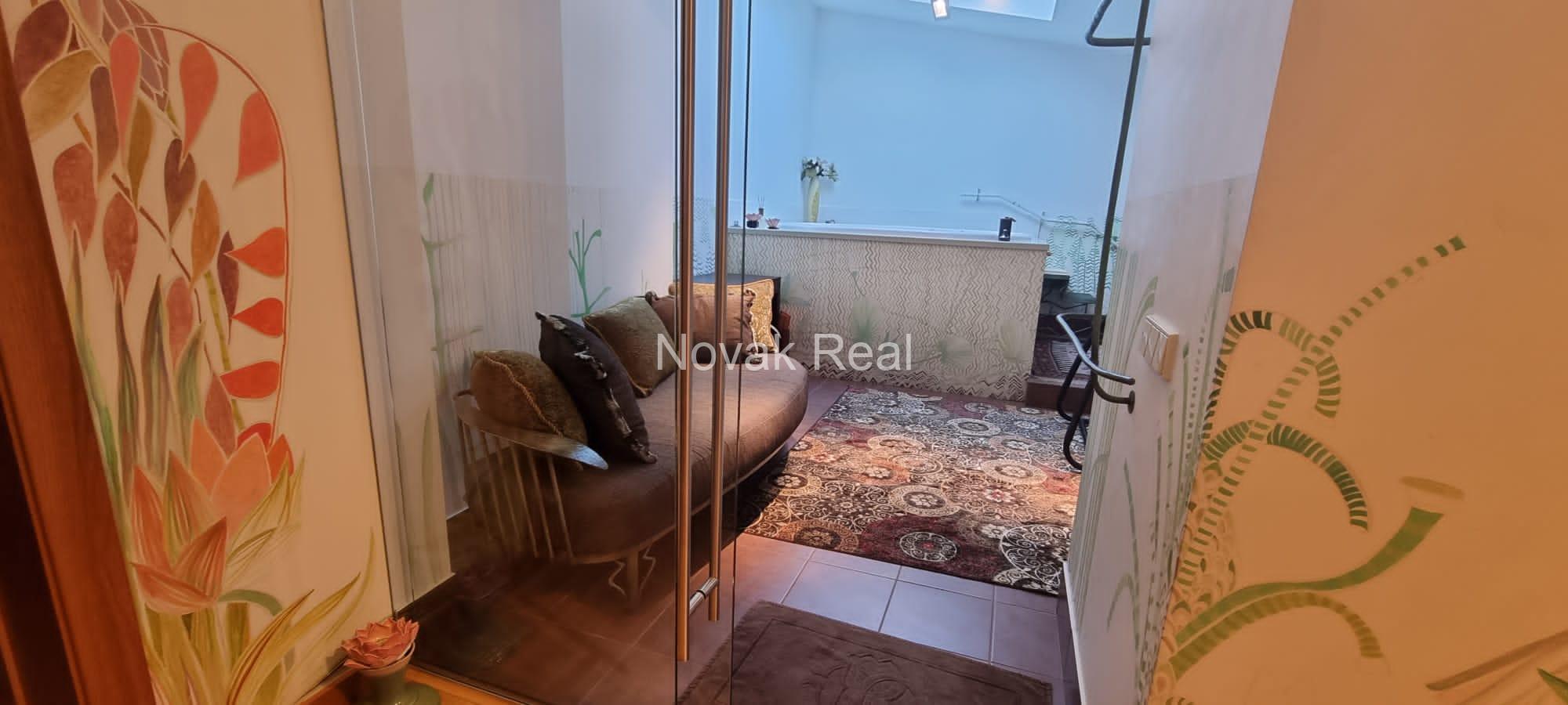 Есть зона СПА, с баней и джакузи. Техническое помещение где расположено свой отопительный котёл, система рекуперации воздуха, очистительные фильтры для воды. Везде кондиционеры и полы с подогревом.